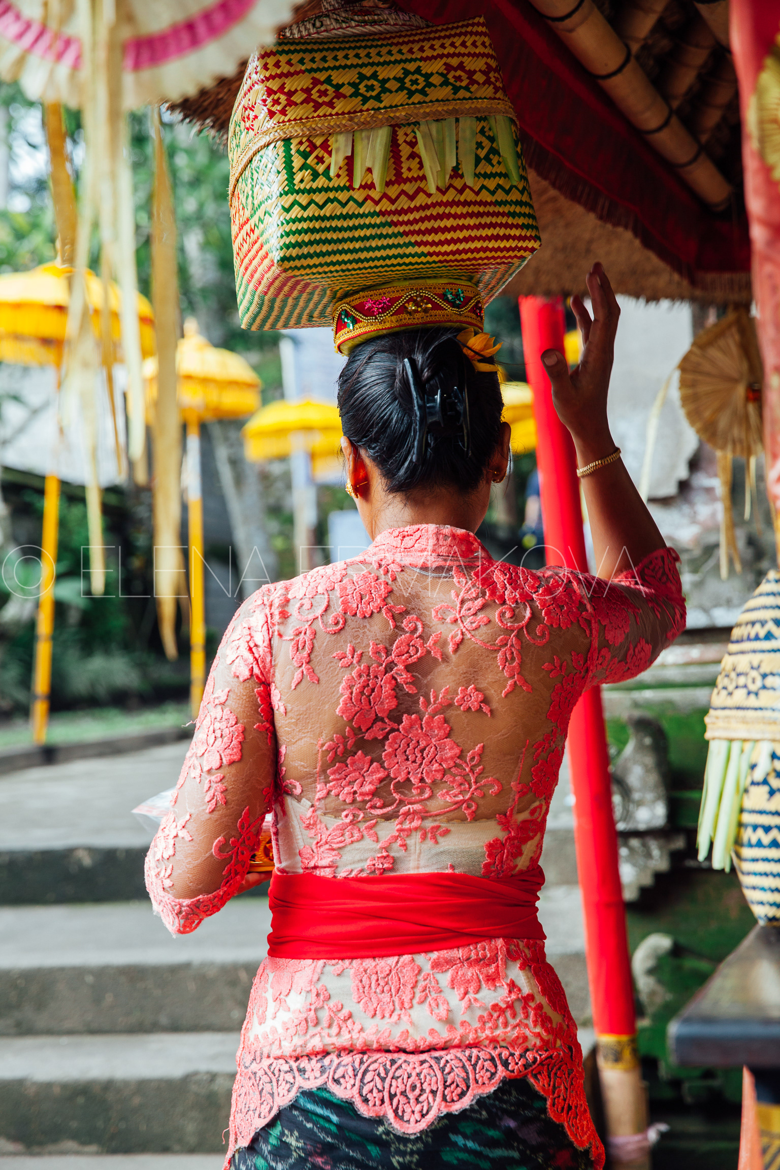Balinese people take blessings in the temple during religious ceremony commemorated to Nyepi celebrations, Bali, Indonesia.